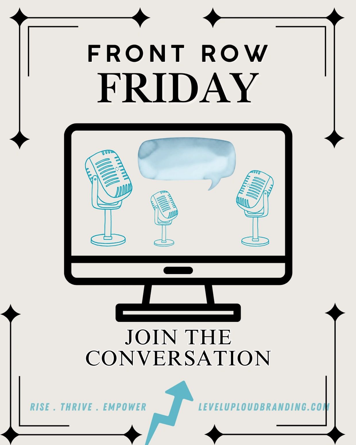 Front Row Friday, hosted by Level Up Loud Branding, is our spotlight series where business owners, creatives, and industry leaders step into the conversation. We sit down for real, engaging interviews that highlight your story, your expertise, and your brand—then feature them across all of our social platforms for maximum visibility.